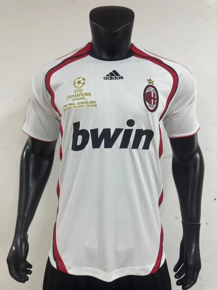 احصل على نسخة نادرة من تيشيرت نادي ميلان الإيطالي بلونه الأبيض الكلاسيكي، المستوحى من تتويجه بلقب دوري أبطال أوروبا عام 2007. يتميز بتفاصيل البطولة الذهبية المطرزة، وشعار النادي الأيقوني، مع شعار الراعي الرسمي “Bwin”.